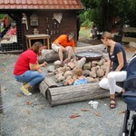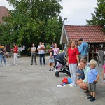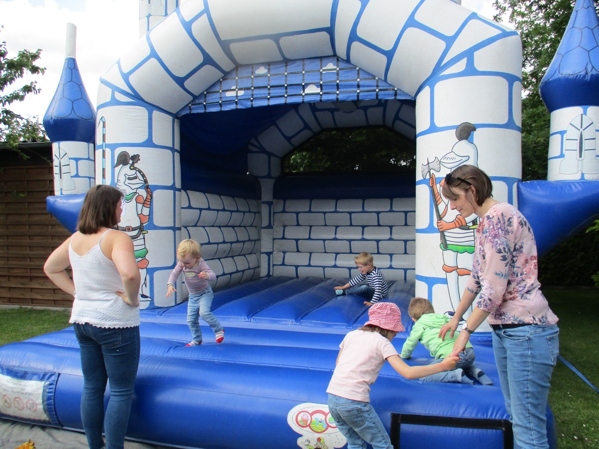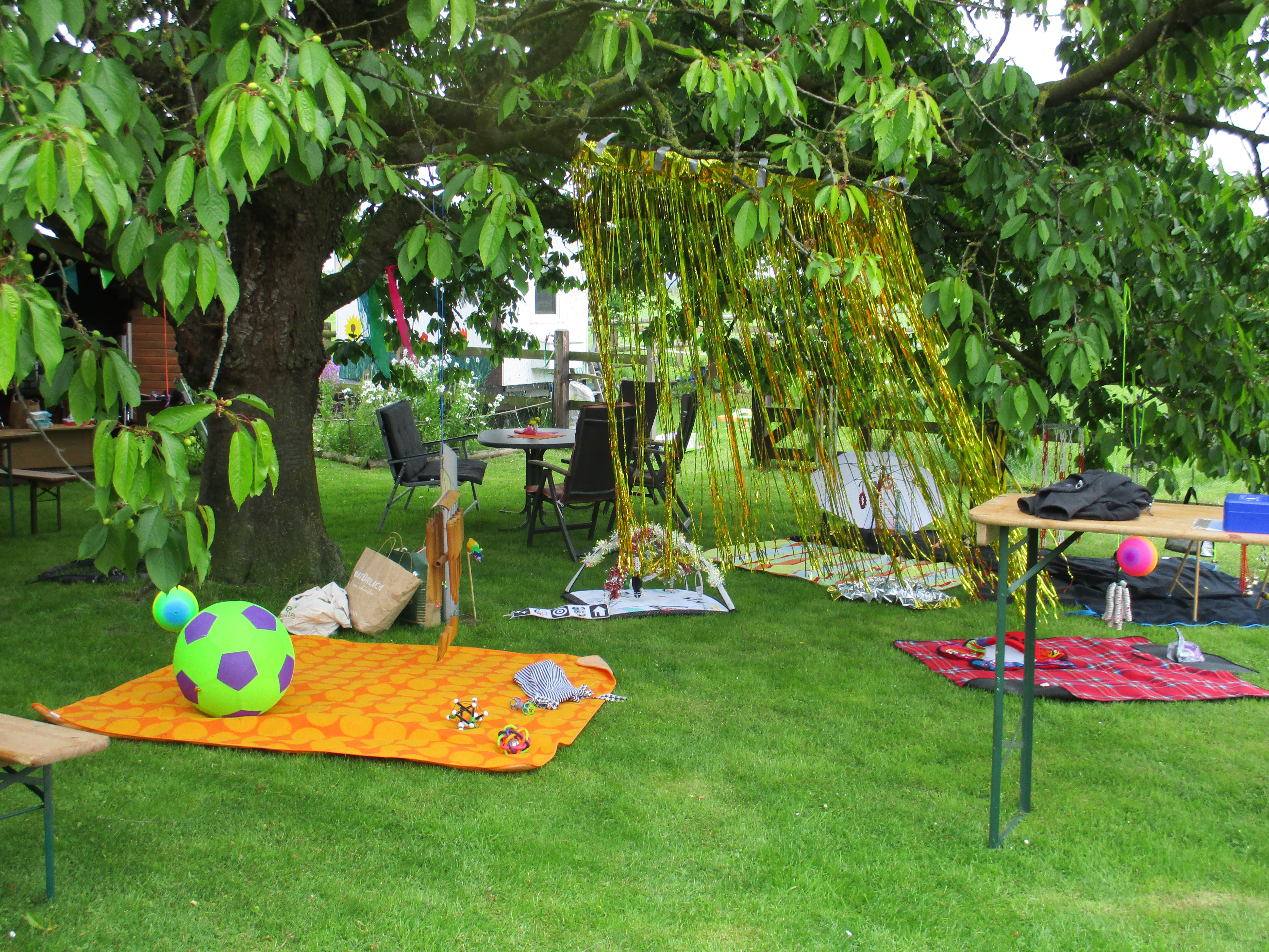 Und so gestalteten wir den schon sehr schönen Hof mit Heuscheune, zig Fahrzeugen, Sandkasten und Bolzwiese zu einem Frühförderparadies und schickten Stoßgebete zu Petrus, der uns erhörte. Das Wetter meinte es gut mit uns!