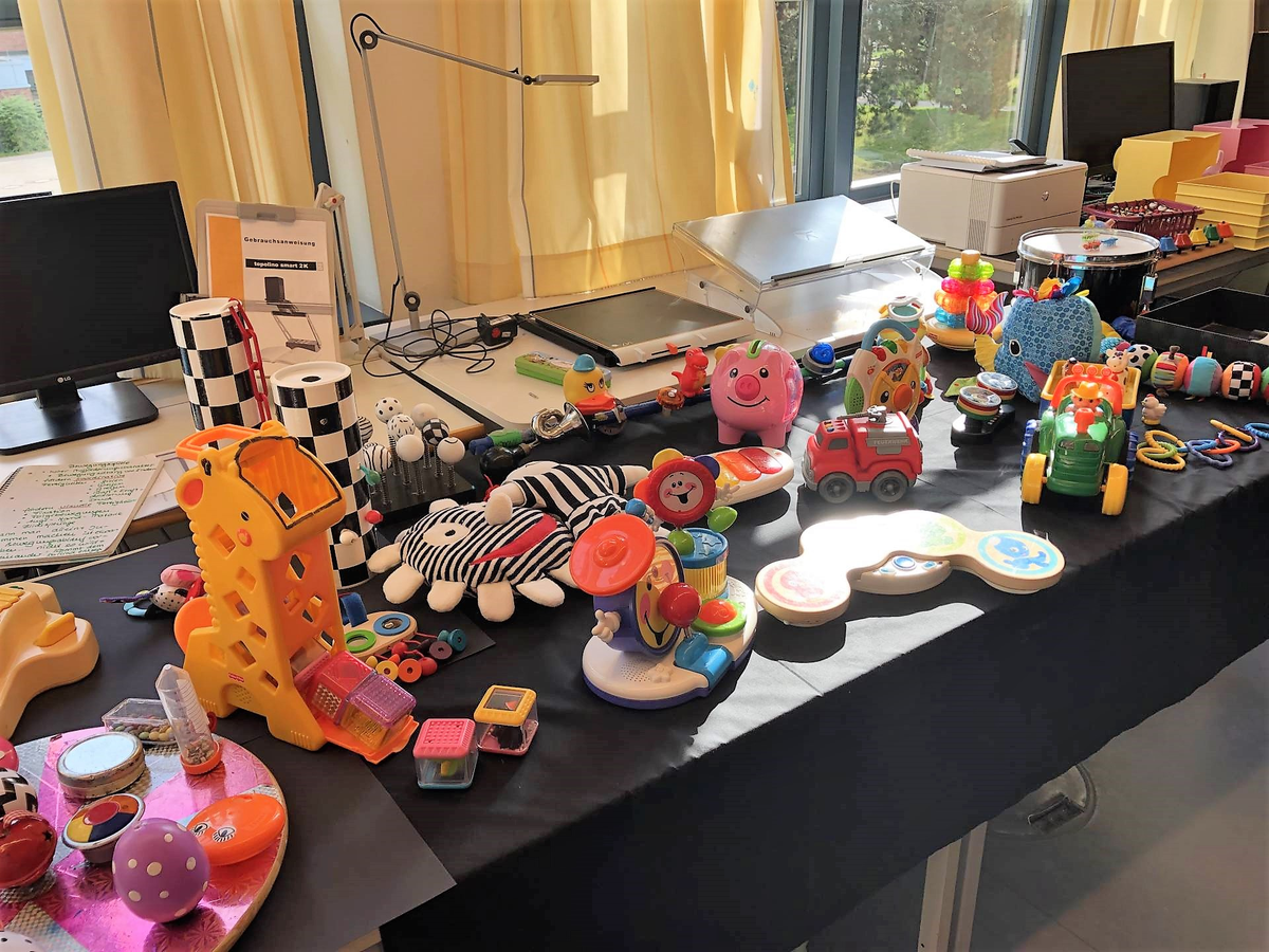 Am vergangenen Montag kamen auf Einladung der Frühförderung Sehen unsere Kolleginnen der Frühförderung Hören der Münsterlandschule zu einem Austausch in unsere Teamsitzung. Jede Kollegin aus beiden Teams hatte für das Treffen einige Lieblingsmaterialien mitgebracht, die in kleinen Ausstellungen präsentiert und dann mit Arbeitsideen erläutert werden konnten.